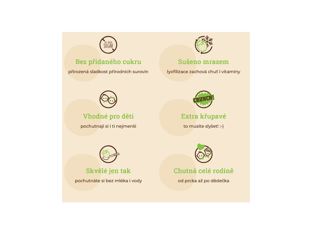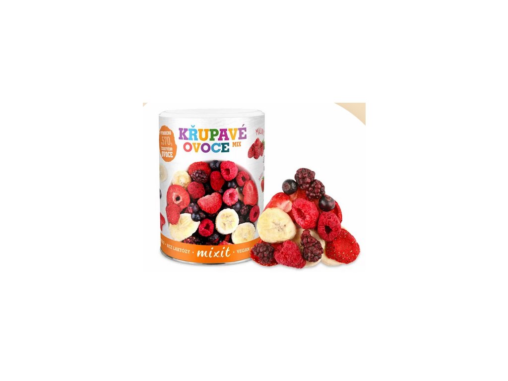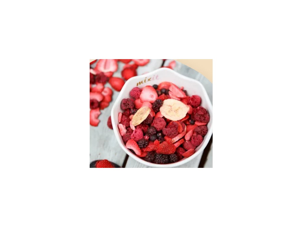 Mrazem sušené ovoce v malém tubusu. Pochutnejte si na malinách, jahodách, ostružinách, černém rybízu a banánu v jejich nejlepší formě bez použití konzervantů a dalších přísad....